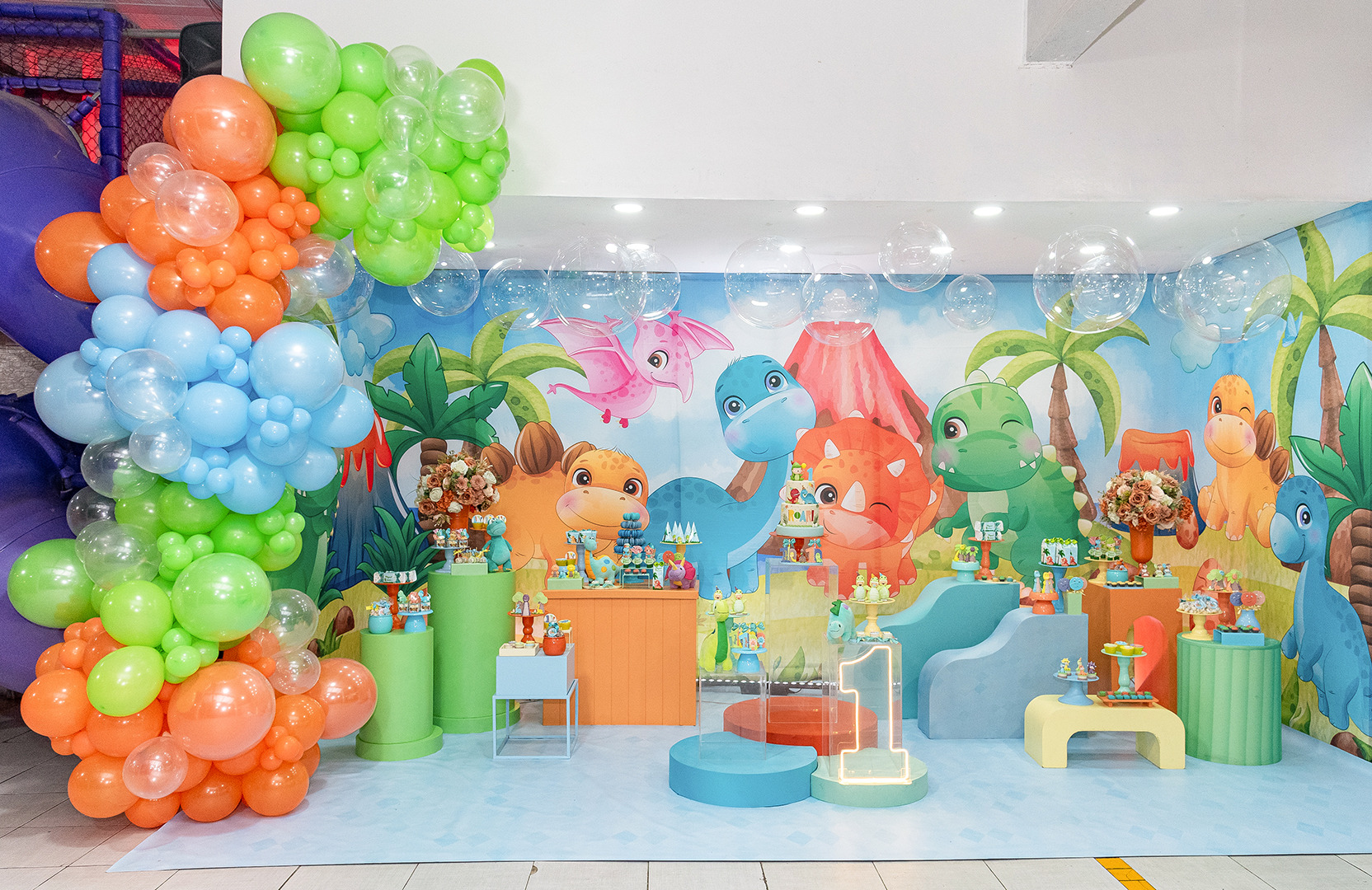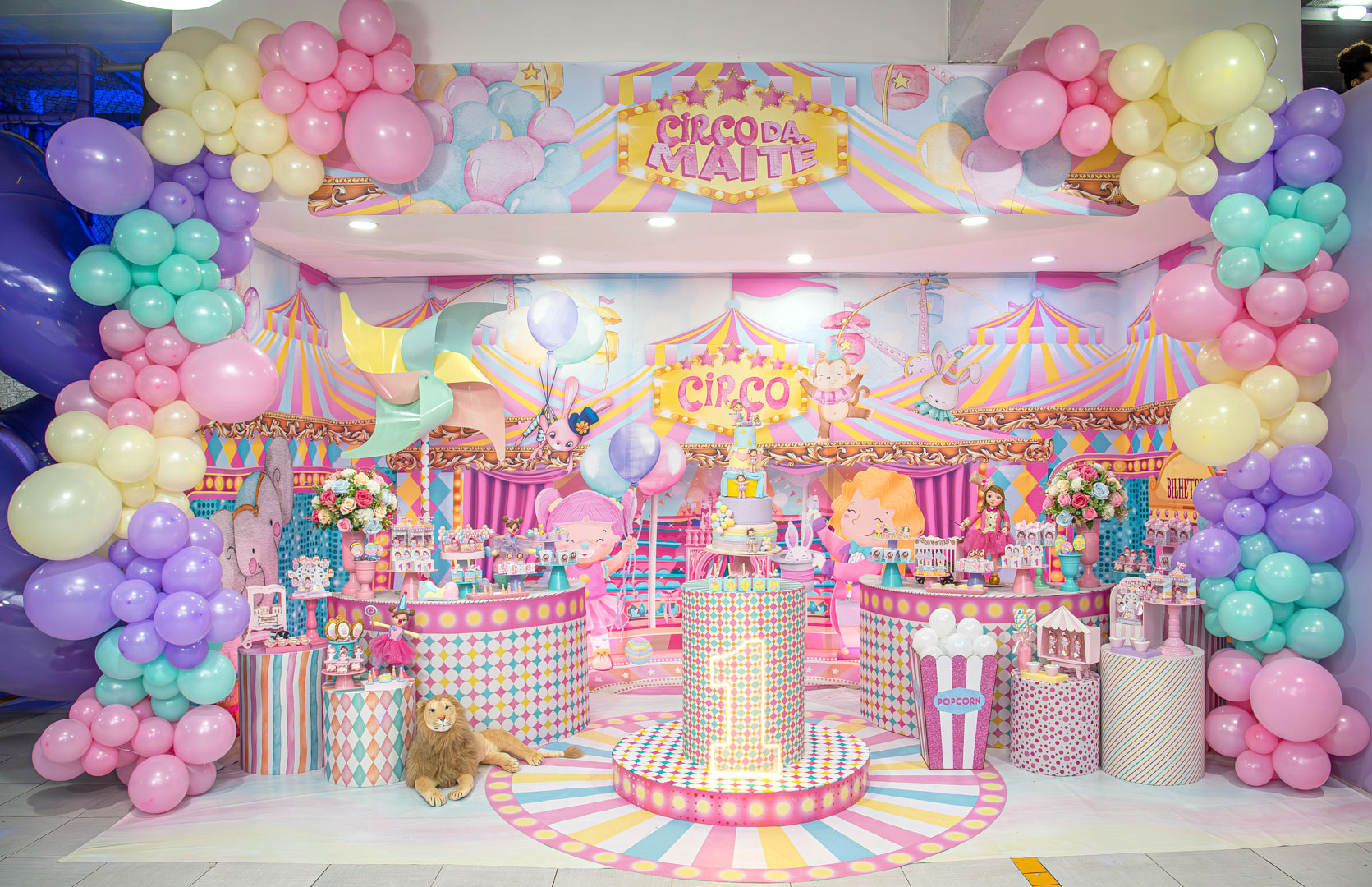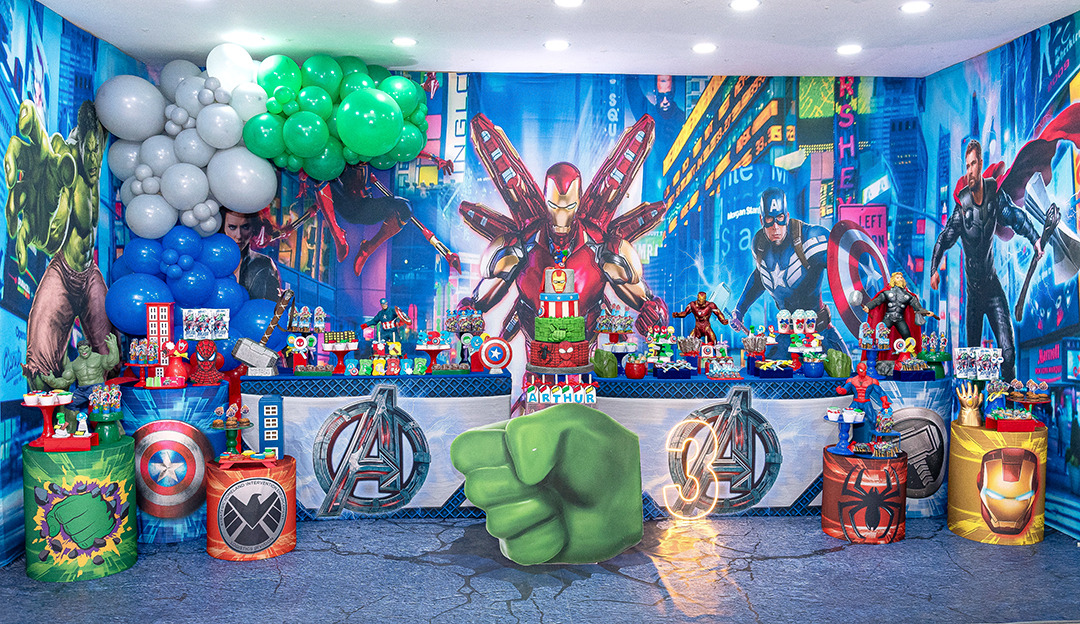 * Inclui mesas, balões, estante, painéis no tema, bandejas e cabideiro