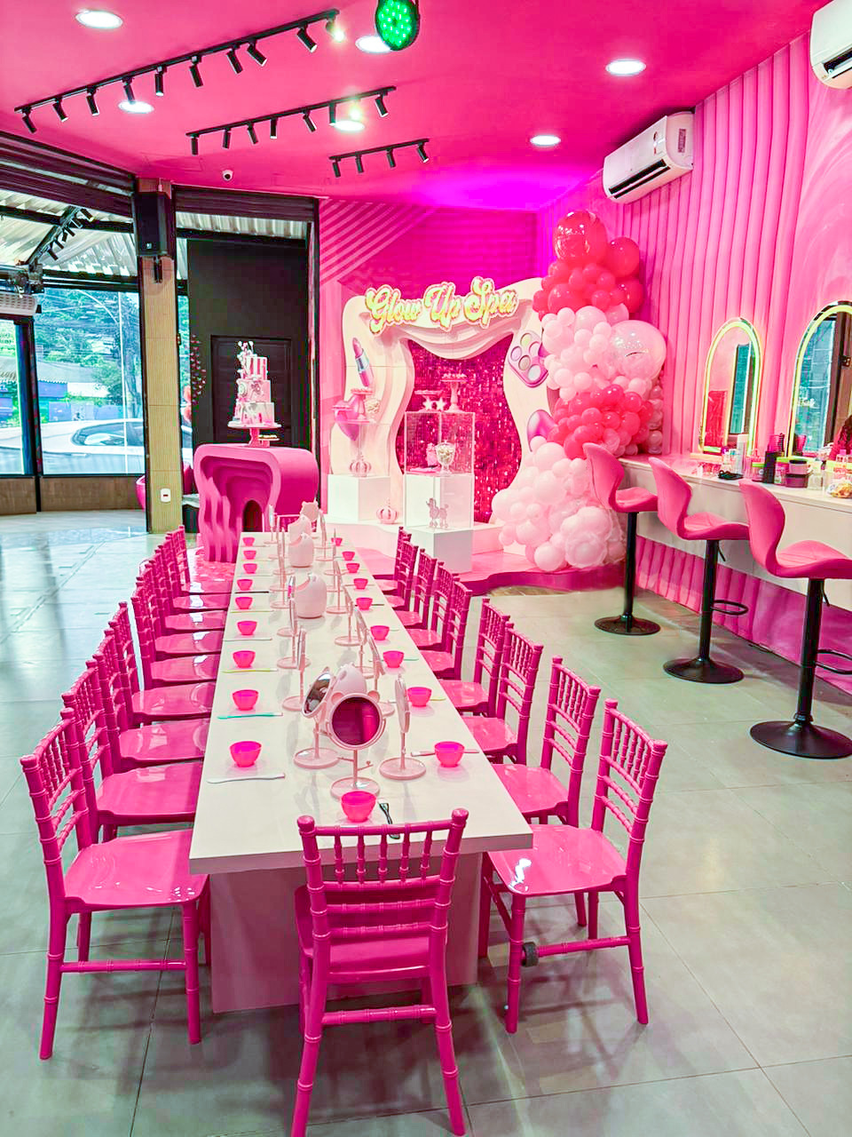 Com uma decoração glamourosa e totalmente instagramável, unimos o relaxamento de um spa com a agitação de uma balada teen.