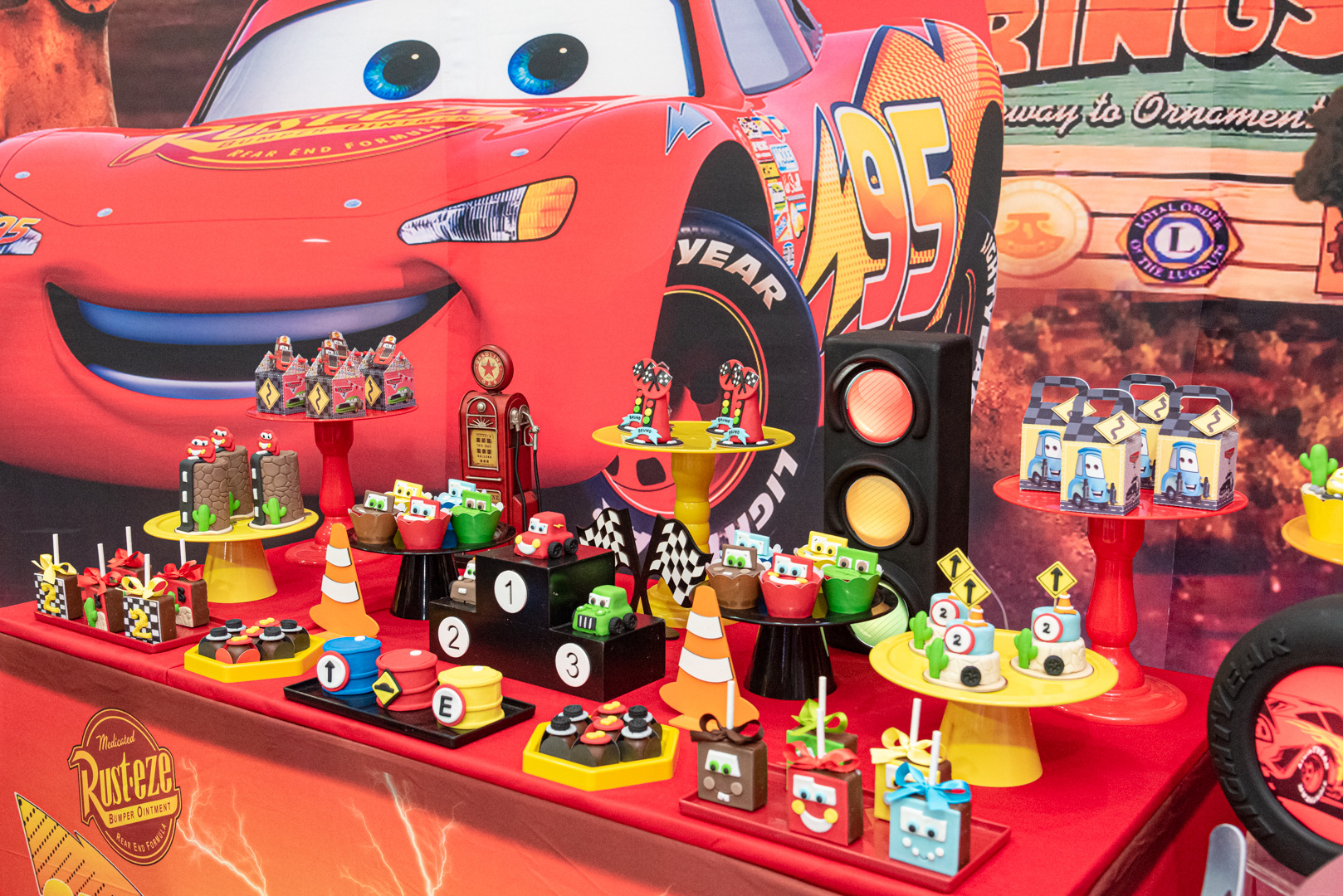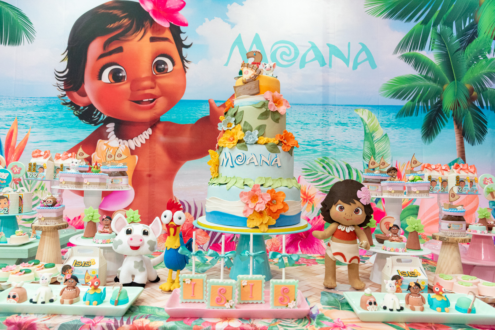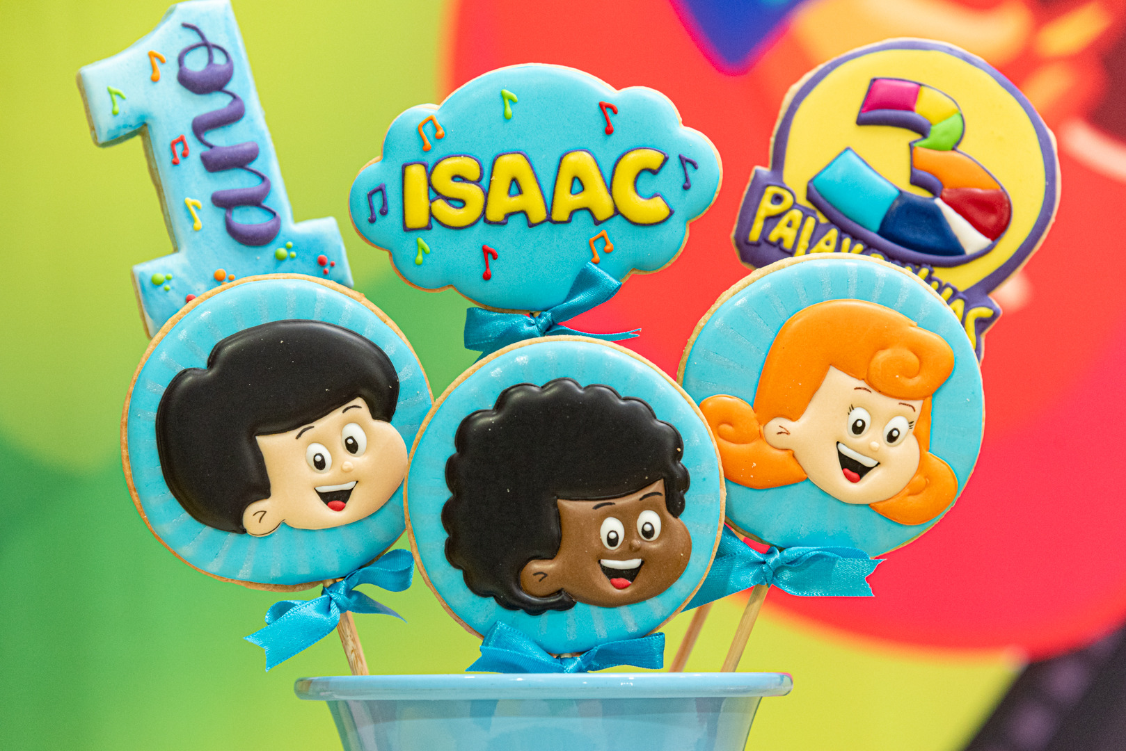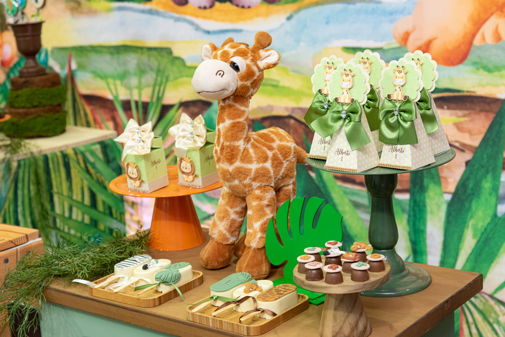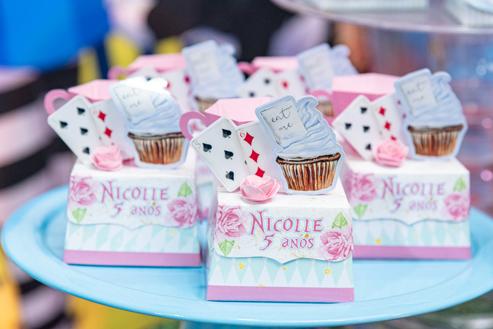 (doces, tapete e outros itens com o nome da criança)